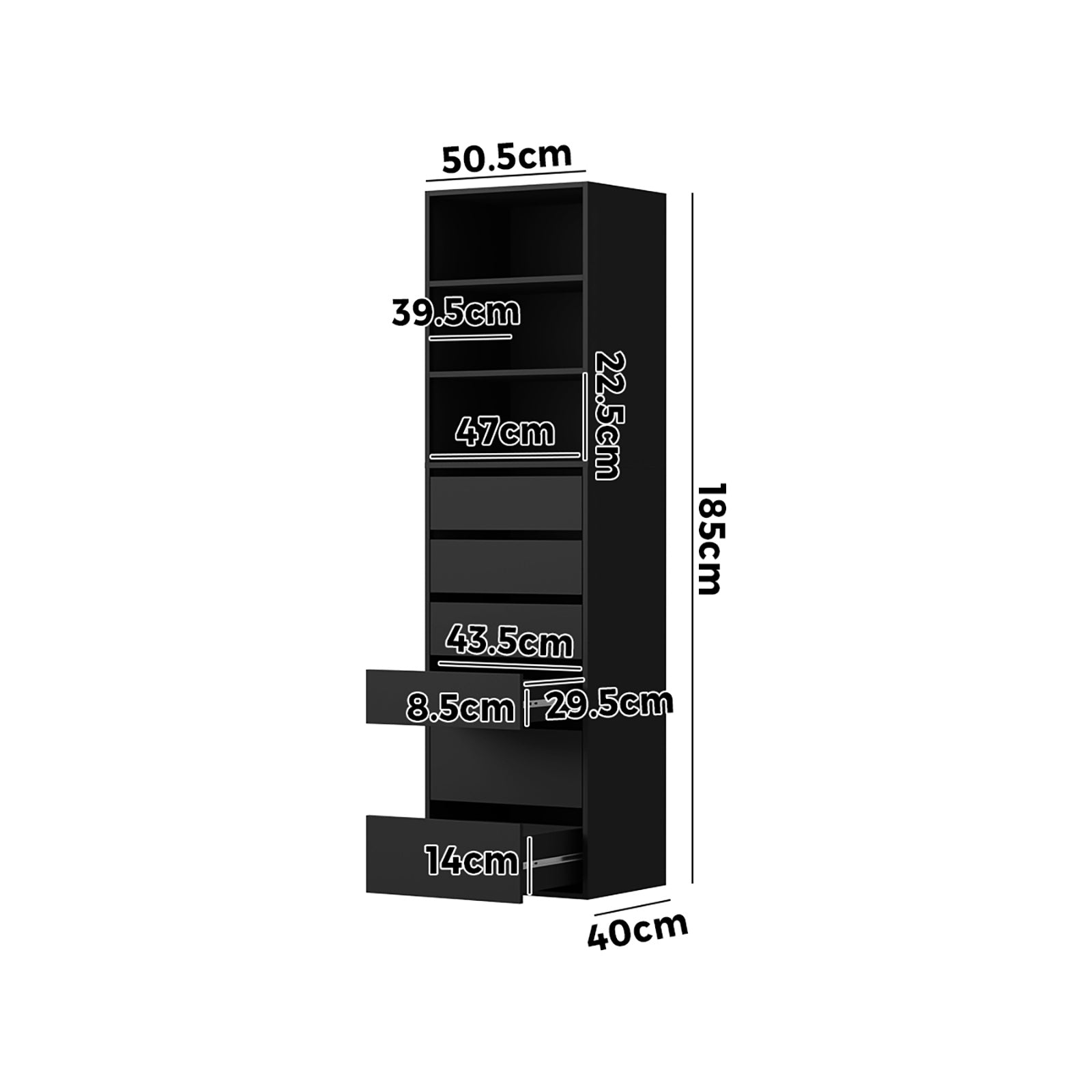 Oikiture Wardrobe Storage Cabinet Shelf Unit Clothes 3 Shelves 6 Drawers Black