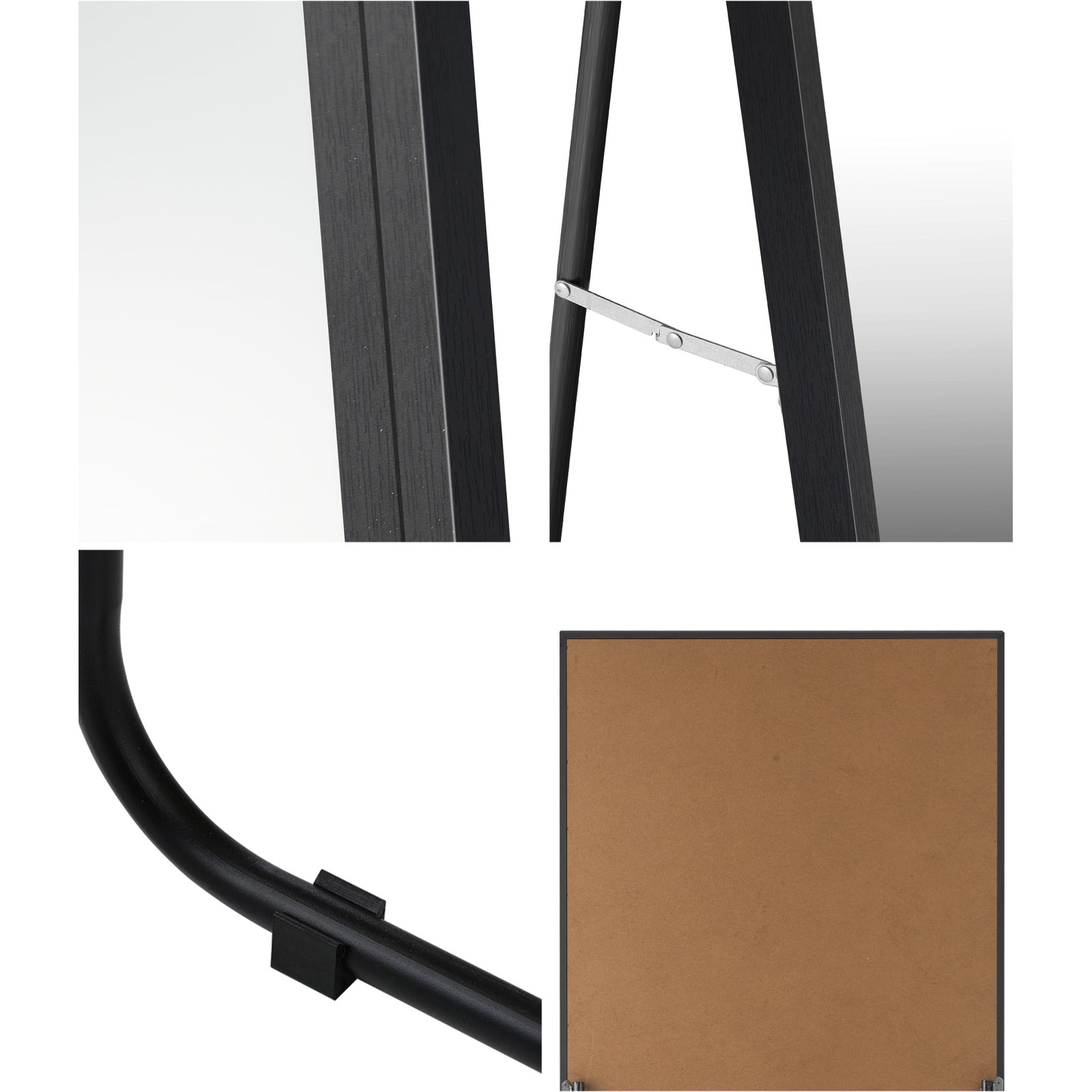 Oikiture Wooden Full Length Mirror 166x60cm Floor Mirrors Free Standing Black