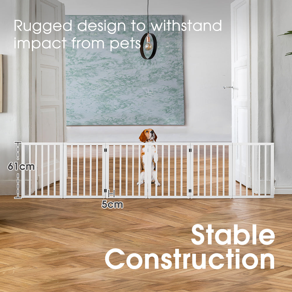 Petzly Wooden Pet Gate Dog Fence Safety Barrier Security Door 6 Panel 61cm White