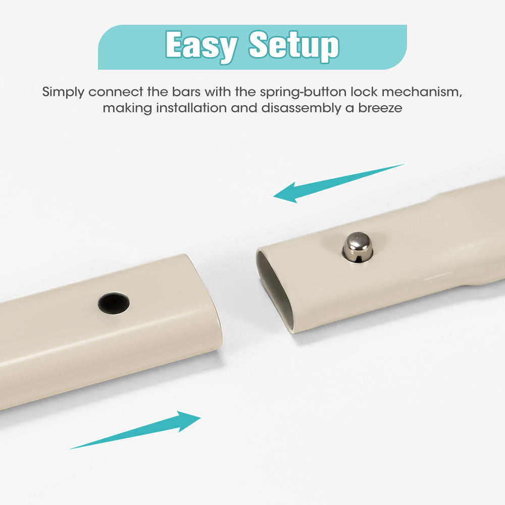 • Simple Installation: Easily connect the bars using the spring-button lock mechanism for quick and hassle-free setup and disassembly.