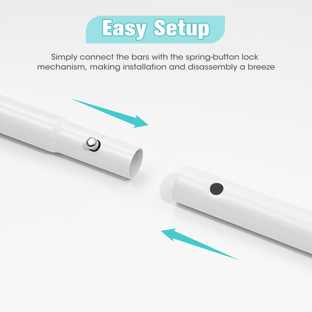 • Simple Installation: Easily connect the bars using the spring-button lock mechanism for quick and hassle-free setup and disassembly.