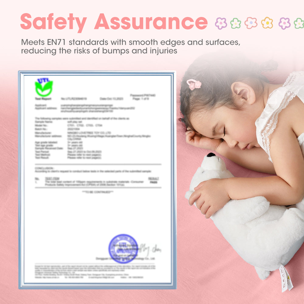• Certified Safety: Meeting EN71 safety standards, our soft play set is designed with rounded edges and smooth surfaces, reducing the risks of bumps and injuries.