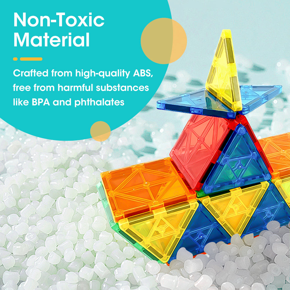 • Play Safe: Crafted from non-toxic ABS, our magnetic blocks ensure a worry-free play experience, devoid of harmful substances such as BPA and phthalates.