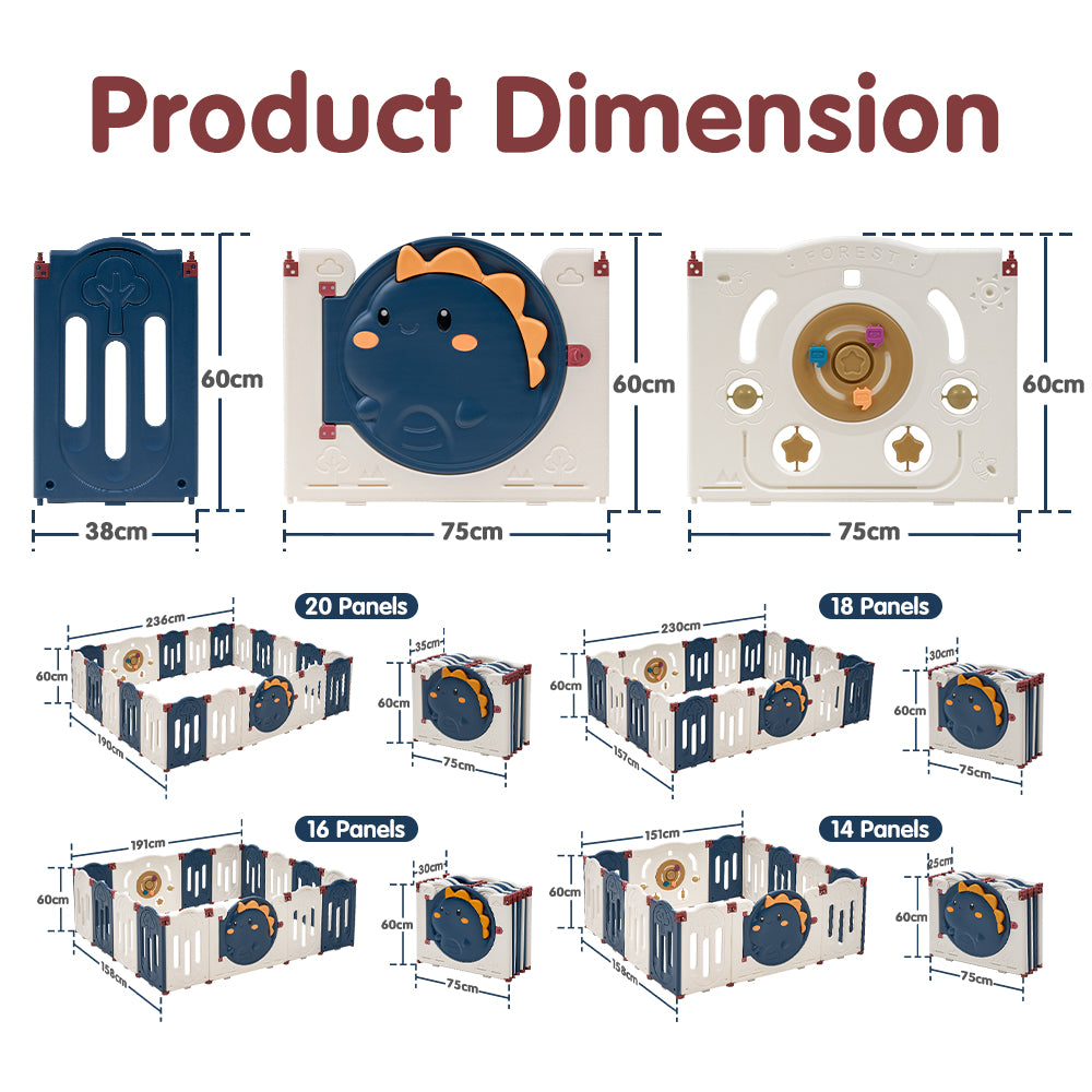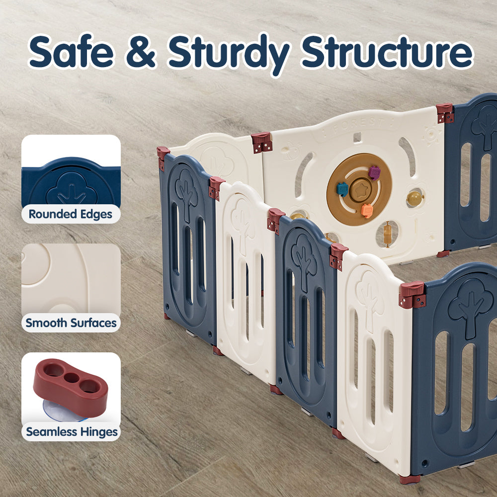 • Stimulating Engagement: Our playpen includes a sensory panel with rotating, pushing, and sliding patterns, encouraging children to explore and interact.