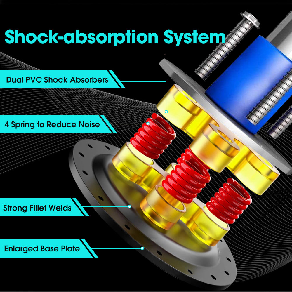 • Shock-absorption System: Dual PVC shock absorbers and 4 powder coated carbon steel springs absorb shocks and minimize noise while offering the right rebound.