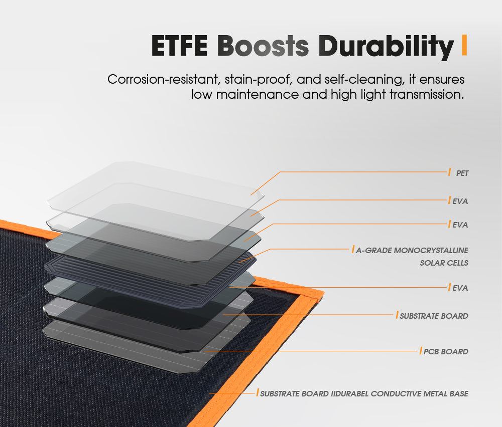 • Robust ETFE Film: ETFE film guards our blanket against corrosion and stains, while its non-stick self-cleaning boosts light transmission for increased energy output.