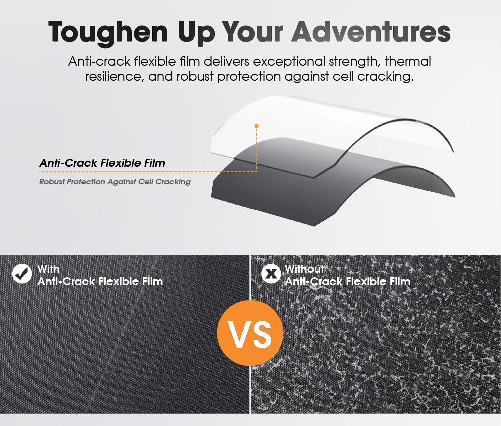 • Crack Free: Our anti-crack flexible film offers higher tensile strength, improved thermal stability and enhanced resistance to physical stress, ensuring no cell breakage.