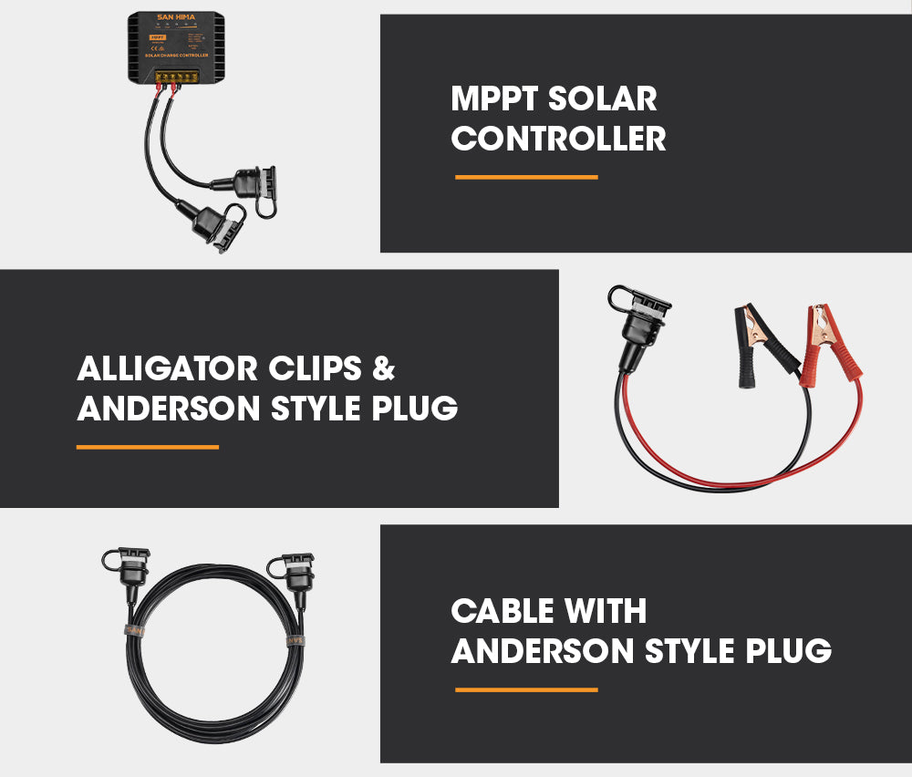 • 1 x San Hima 20A MPPT Solar Charge Controller with Anderson Style Plugs