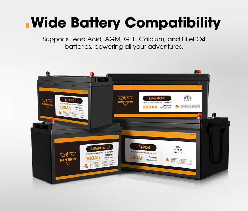 • Versatile Compatibility: Our controller supports Lead Acid, AGM, GEL, Calcium, and LiFePO4 batteries, offering reliable energy for camping, caravanning, and RVing.