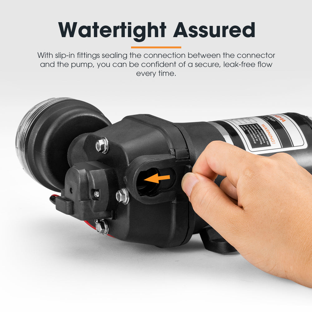 • Watertight Assured: With slip-in fittings sealing the connection between the connector and the pump, you can be confident of a secure, leak-free flow every time.