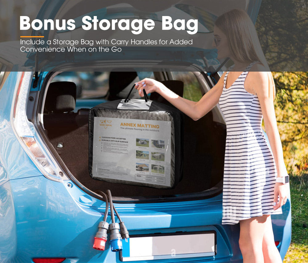 • Super Versatile: Our annex matting offers firm and supportive flooring on various surfaces, making it great for flooring under gazebos, annexs, awnings, tents, and more.