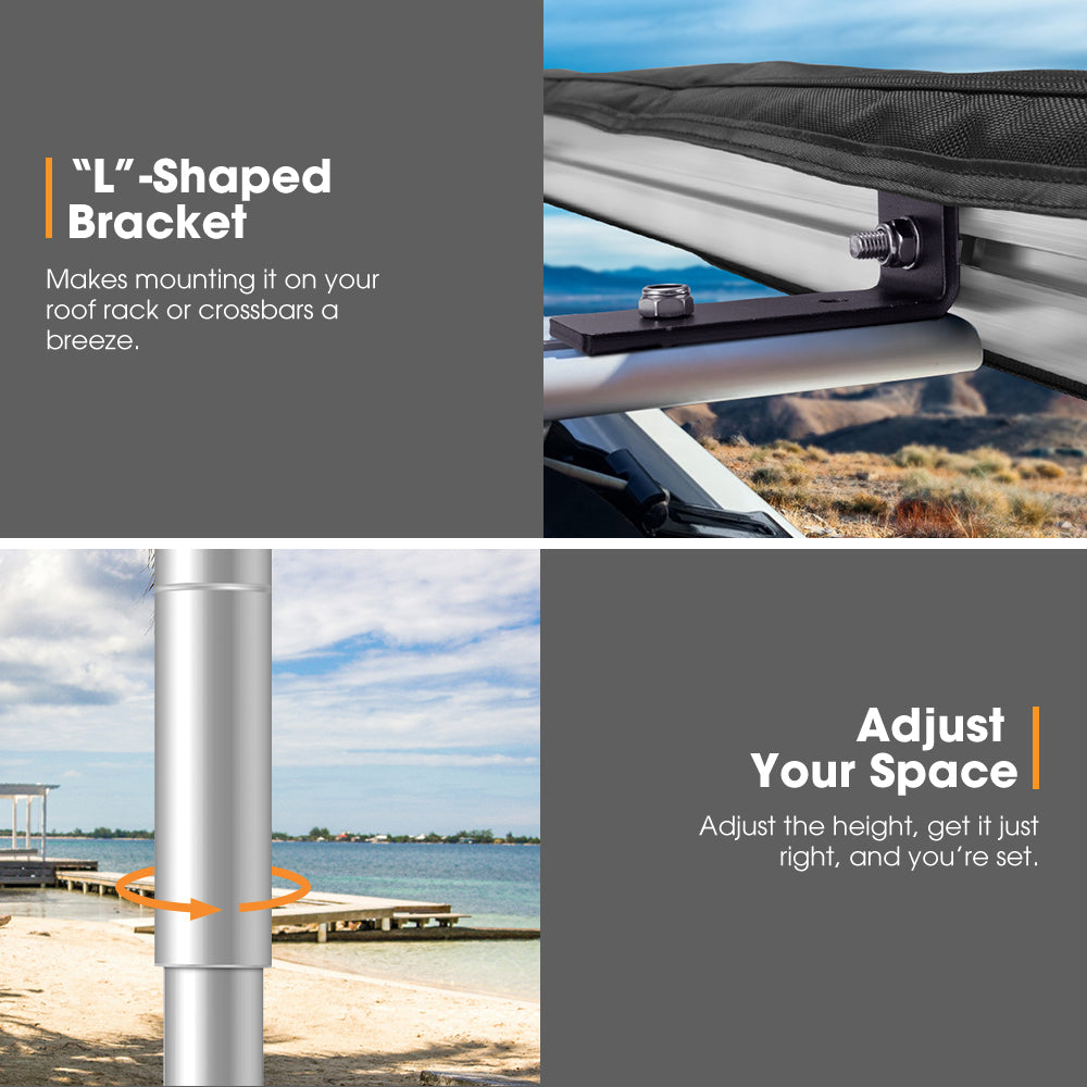 • Flexible Mounting: The “L”-shaped bracket makes mounting it on your roof rack or crossbars a breeze. Adjust the height with two mounting holes to get it just right.