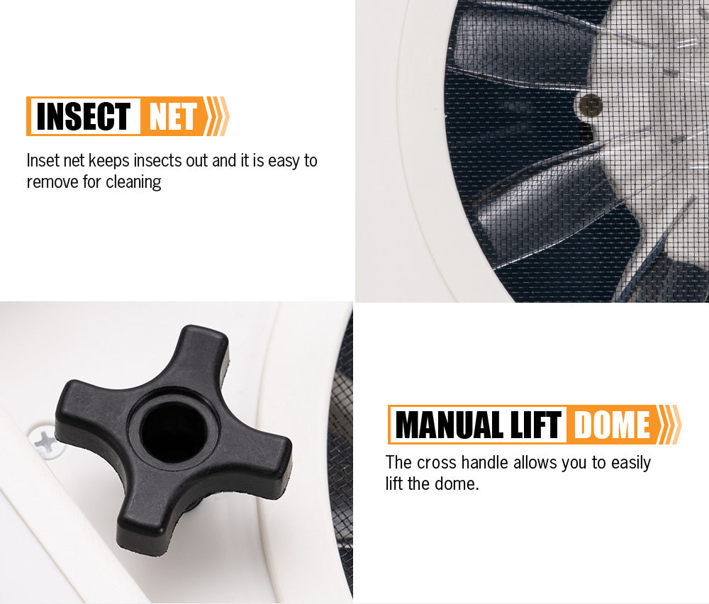 • Bug-Free: Our roof vent fan includes a flyscreen that keeps out insects, bugs, and debris, and it’s easy to remove for maintenance or cleaning when things get dusty.