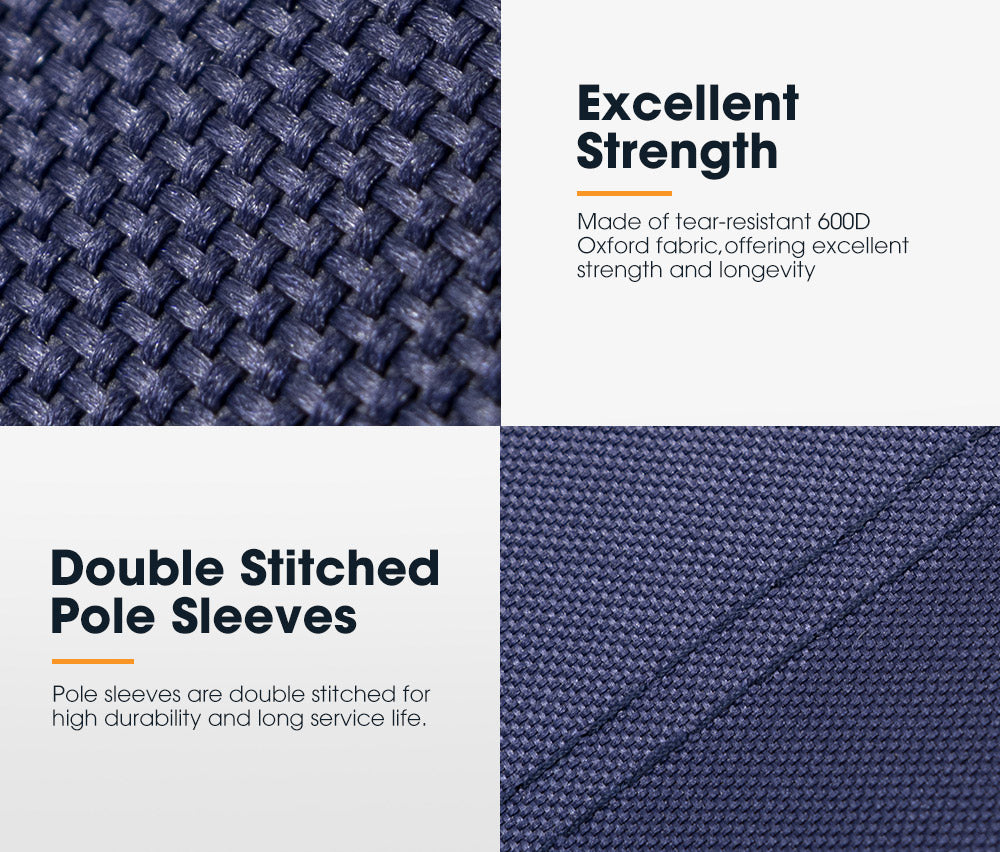 • Double Stitched Pole Sleeves: Pole sleeves are double stitched for high durability and long service life.