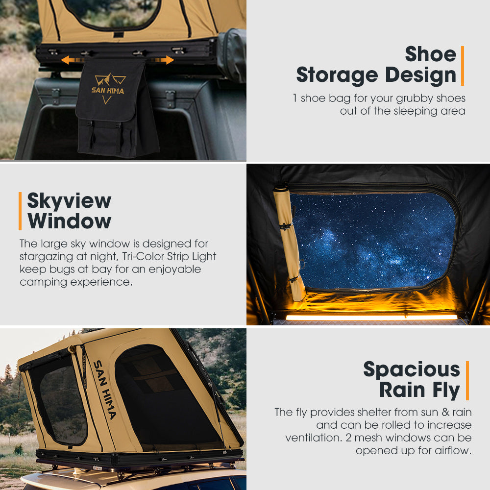 San Hima Kalbarri Gen 2 Roof Top Tent Hardshell Khaki + 120W Solar Panel