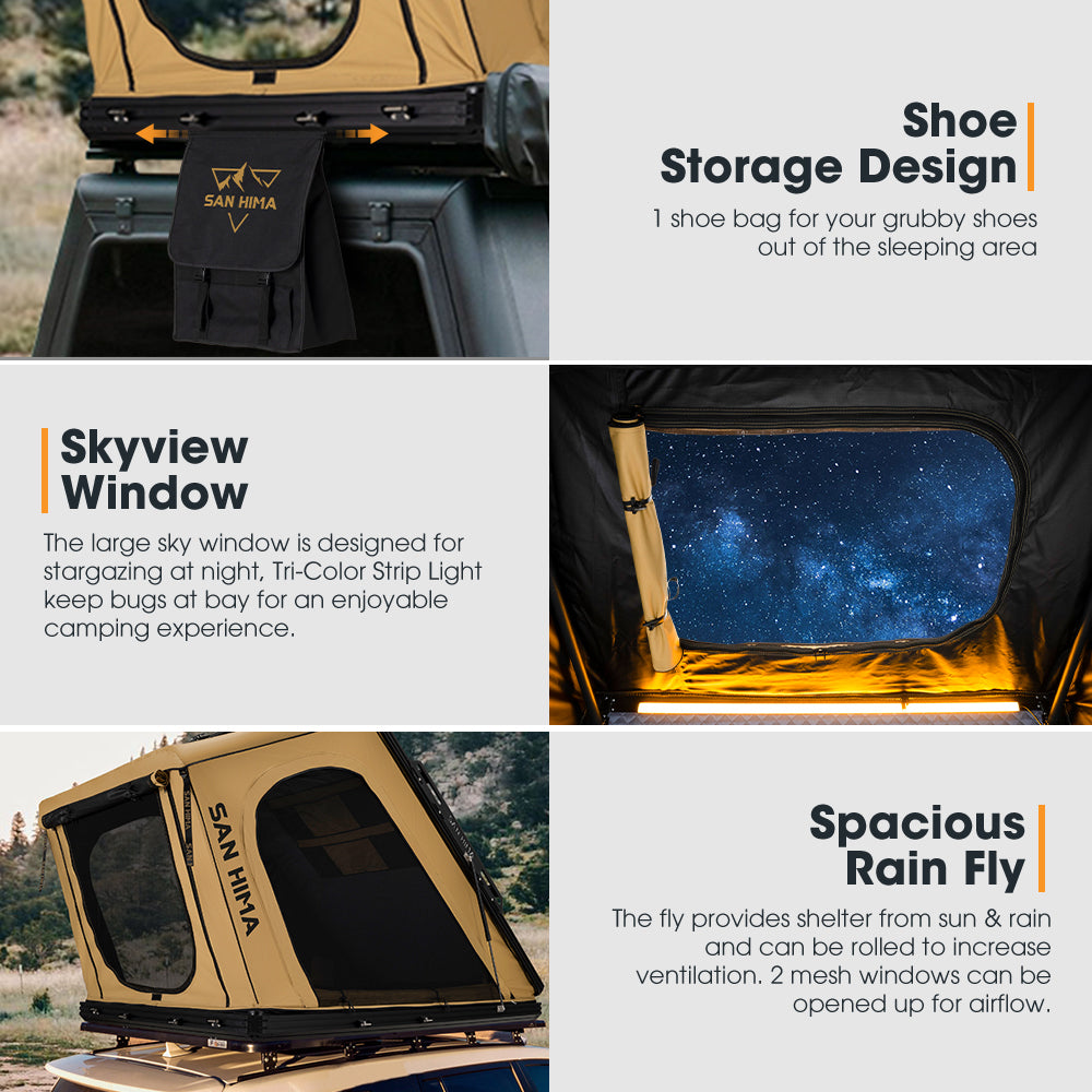 • Stay Insulated: Our hard shell rooftop tent features a solid aluminium honeycomb panel structure that provides excellent insulation in both hot & cool temperatures.