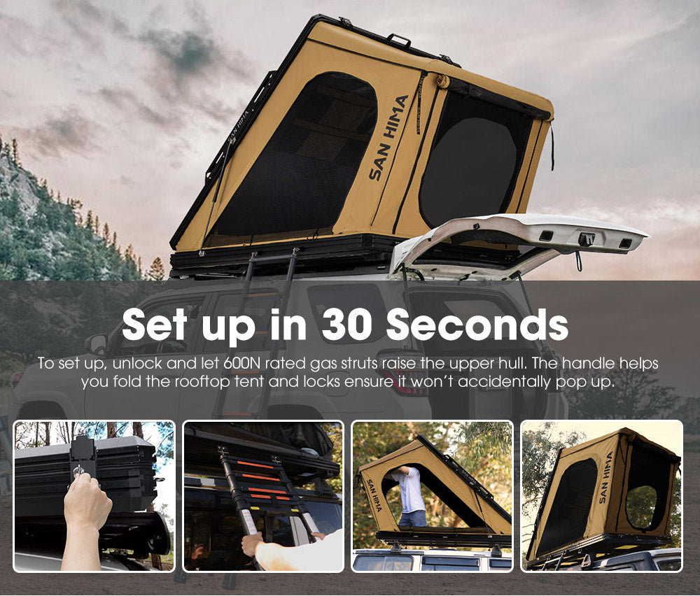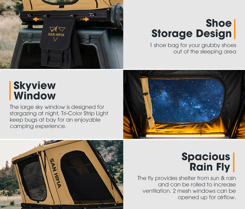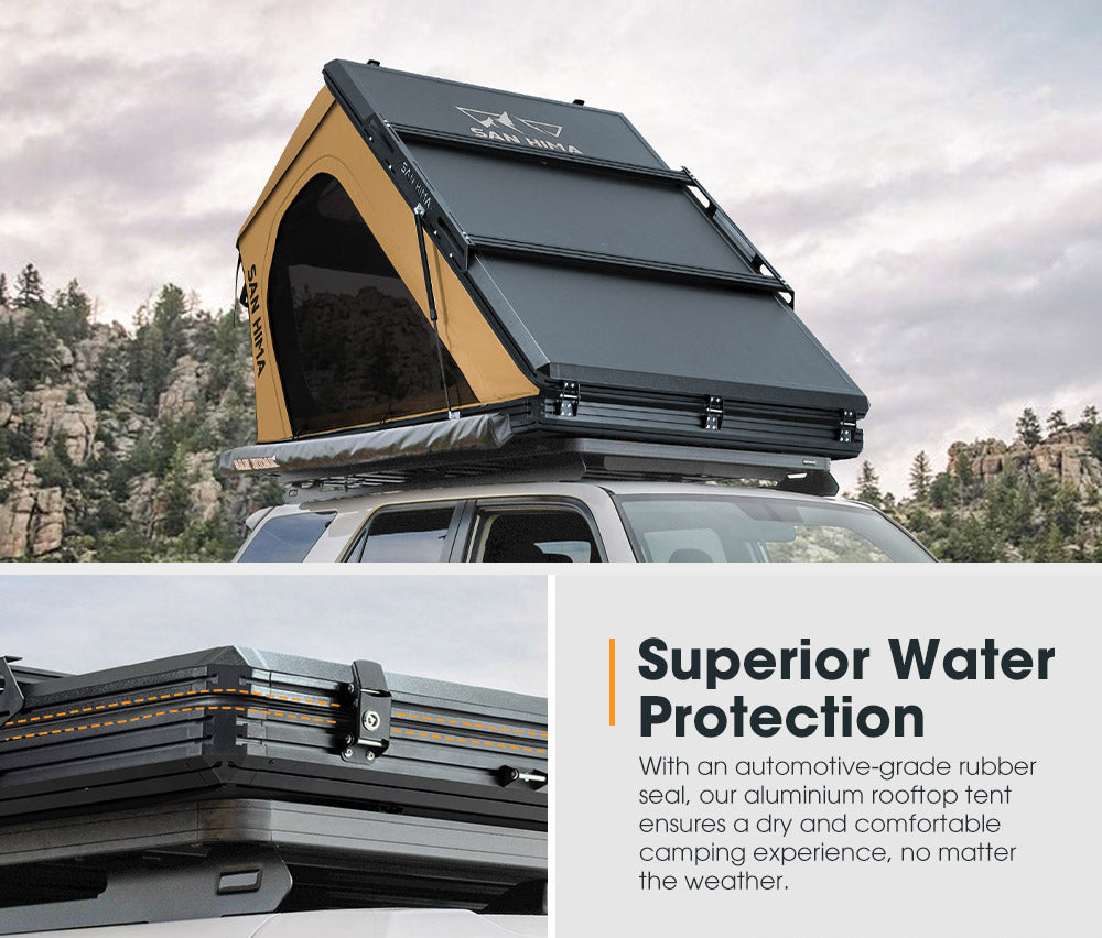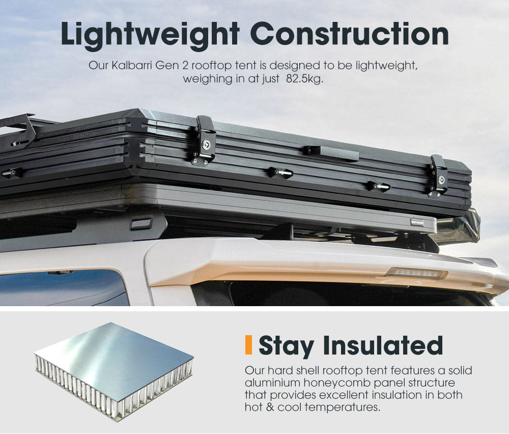 • Stay Insulated: Our hard shell rooftop tent features a solid aluminium honeycomb panel structure that provides excellent insulation in both hot & cool temperatures.