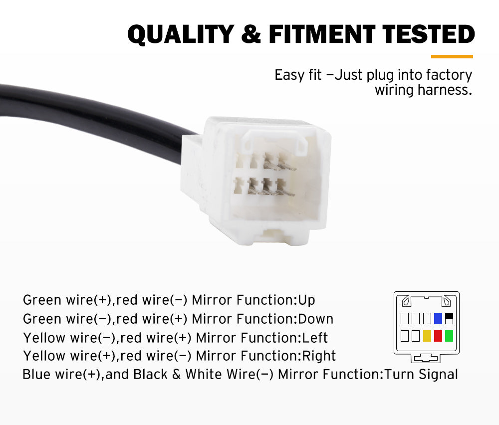 The consrtuction of the factory mirror sometimes does not take towing into consideration,and driver's vision will,to a great extent,be blocked by the caravan at the rear.And this pair of towing mirror is our offering to your pains. The mirrors come as full replacements, and are supplied with plug and play wires for quick installation. We also incorporates two different surfaces to provide different but crucial visuals for your driving safety. The flat mirror is meant for regular driving, and the convex mirror, which is for broader vision to eliminate spots, allows you to have a clear view to the lanes. The mirror has an extension of 100mm, and can slide out a further 100mm when towing. It can also be adjusted to areas of concern, or folded to avoid potential damage. Made of ultra tough ABS, this mirror is therefore equipped with all-weather performance, and is fearless against any harsh road conditions.