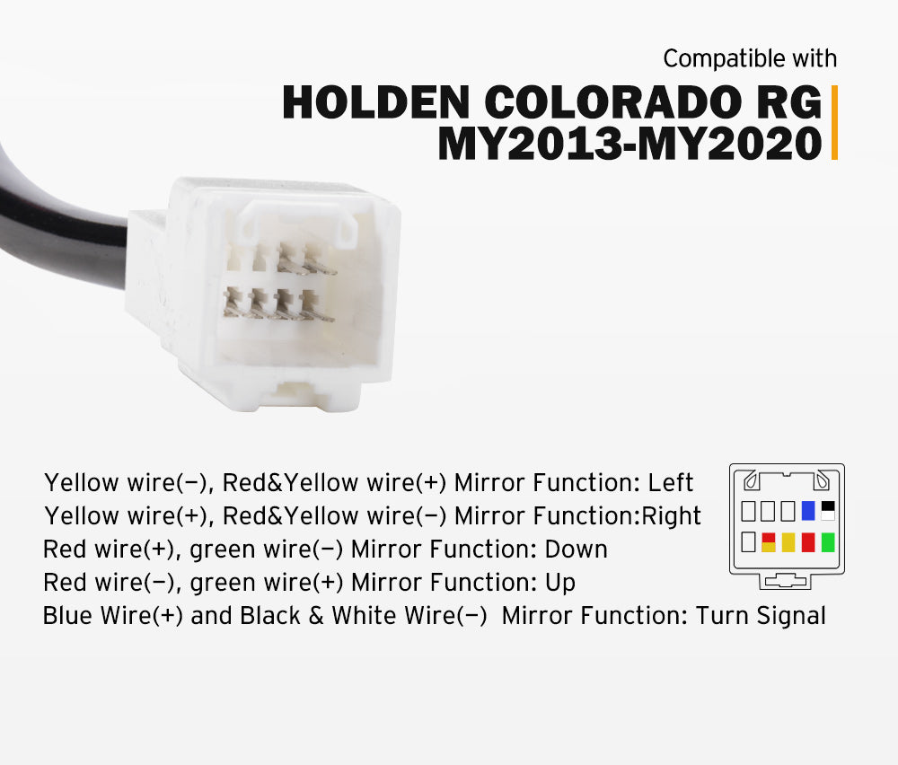 • Suit for Holden Colorado RG MY2013-MY2020 *NOTE: Indicators are required to be in Mirrors by law if you have pre-existing indicators in your OEM mirror. Minor adjustment is needed if OEMs don't come with indicators.Note: This Towing Mirror doesn't come with the radio/heat/power fold option!