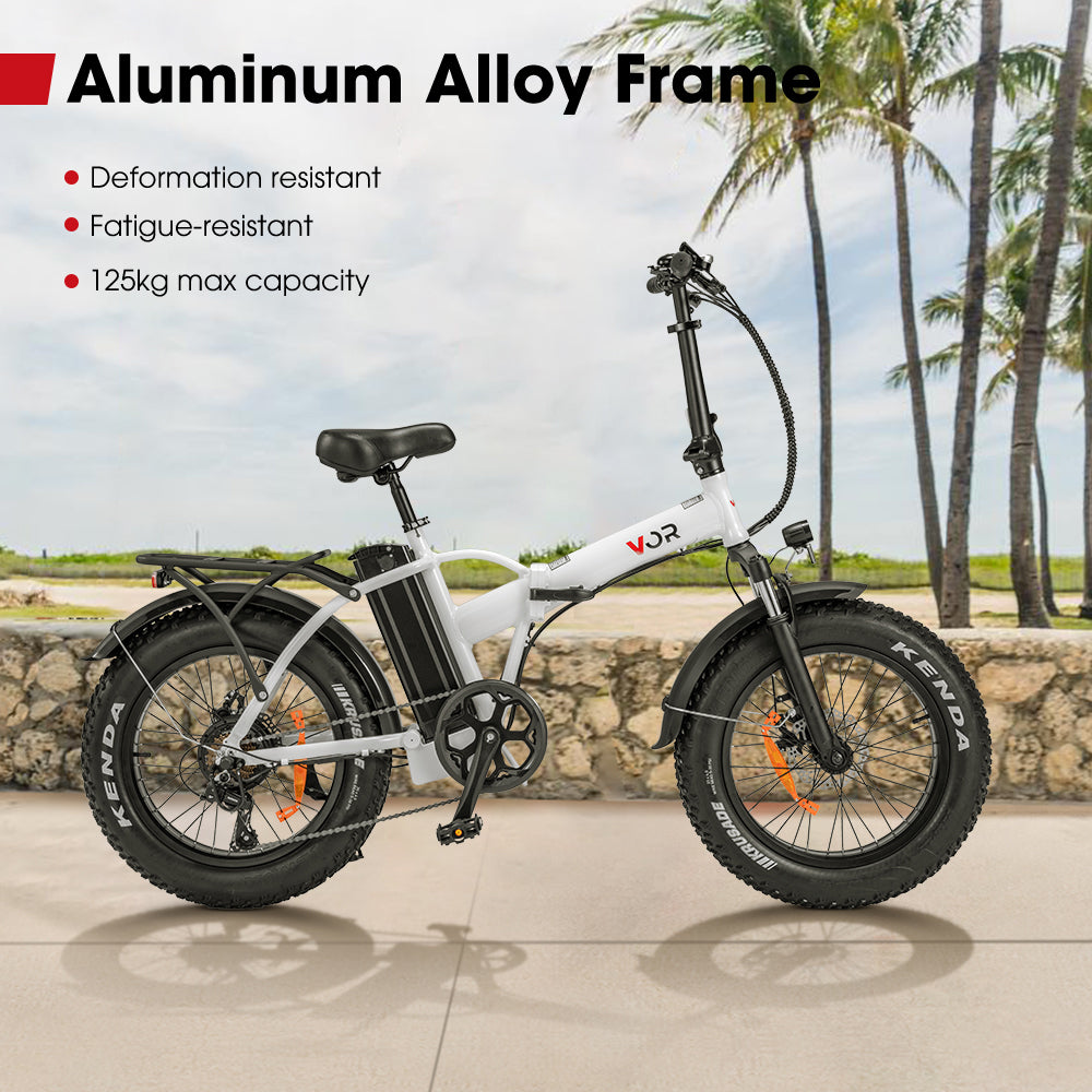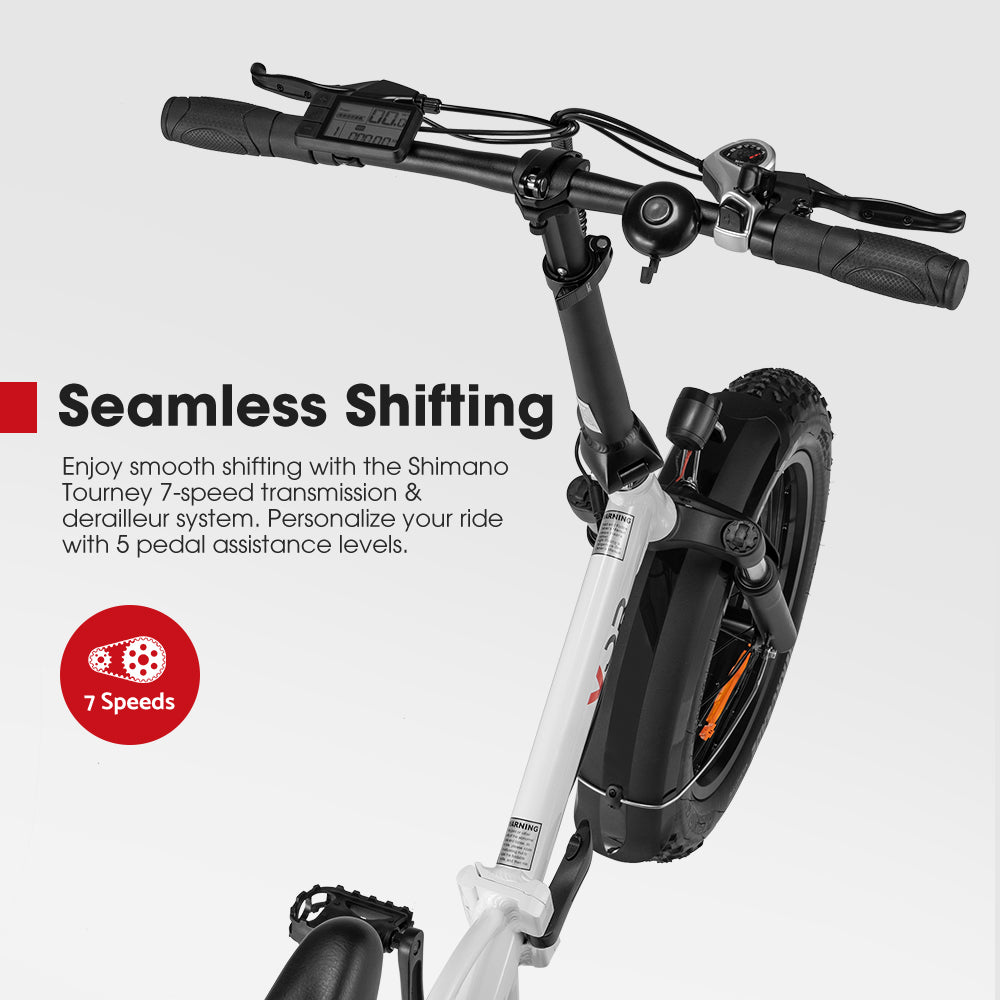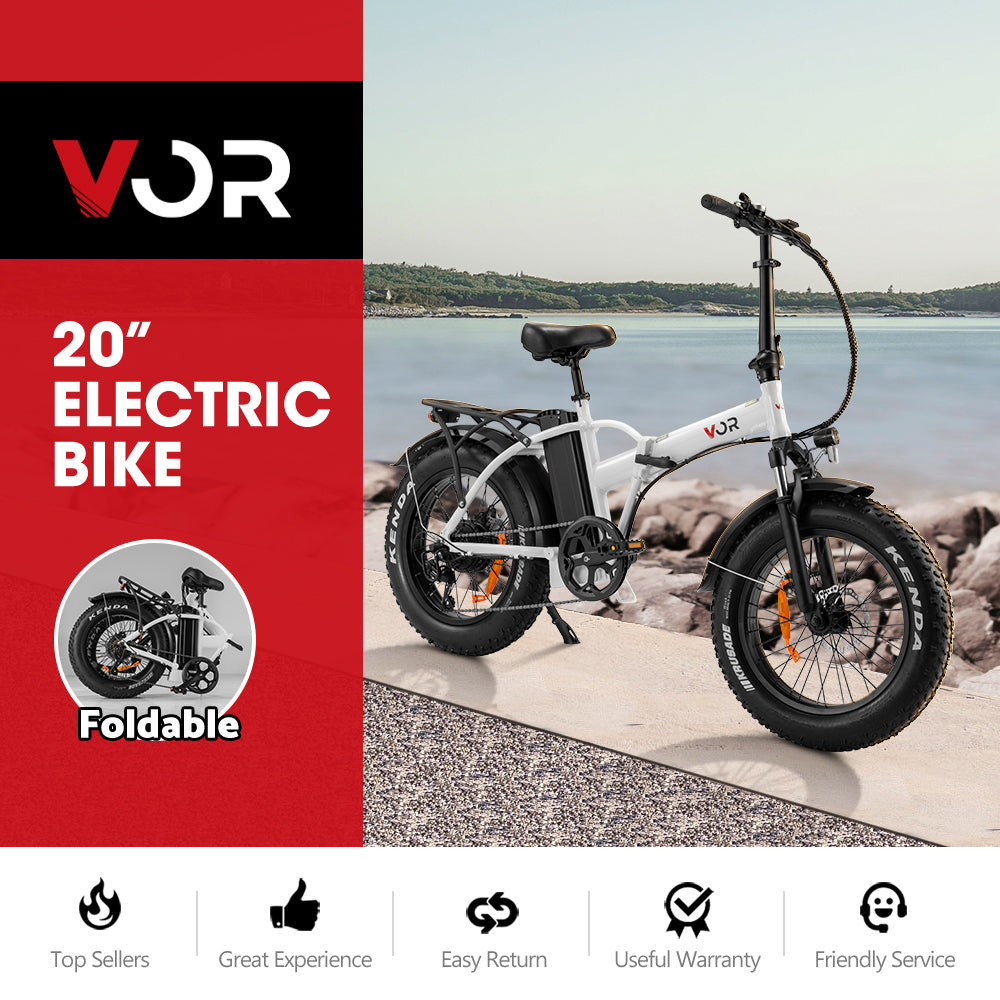 VOR 20 inch Folding Electric Bike 250W Brushless Shimano 7 Speed 4 inch Fat Tires White