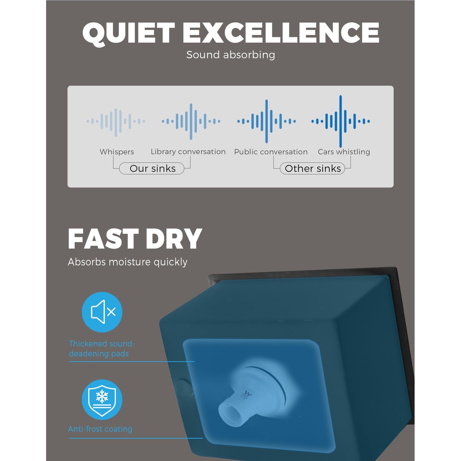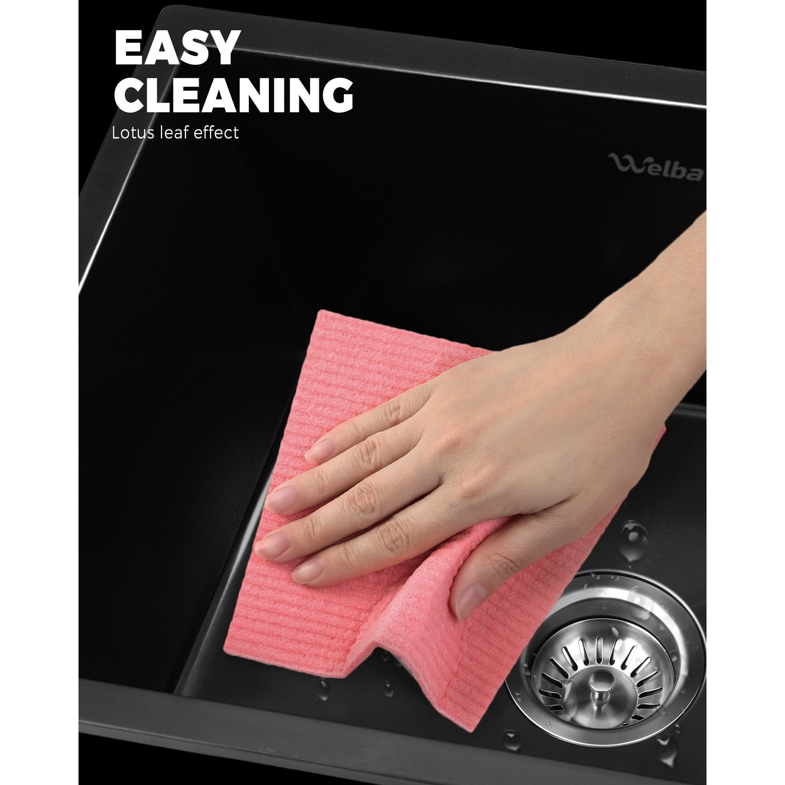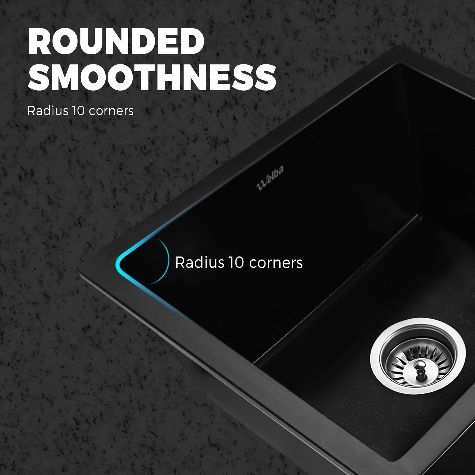 Looking for a sink that matches your expectations in every way. Then look no further than the Welba Granite Sink.Constructed of a granite composition of 80% granite and 20% natural resin in a smooth burnt wood finish, the sink is simply rock solid. With totally desirables attributes such as enhanced wear, scratch and corrosion resistance, oil-proof, anti-bacterial, anti-discolouring and food-grade safe. Plus, the material also makes the sink easy to clean with a beautiful lotus leaf effect presenting itself after the cleaning. Better still, the deep bowl design and R10 corners provide plenty of space to do your dishes or prepare your cooking ingredients with minimum fuss. In fact, the sink comes with built-in thickened sound-deadening pads for better sound absorption that equals to whispers and library conversational levels. Not least, the Watermark-certified 304 stainless steel waste strainer, included as standard equipment, ensures that nothing gets clogged up with the plumbing.