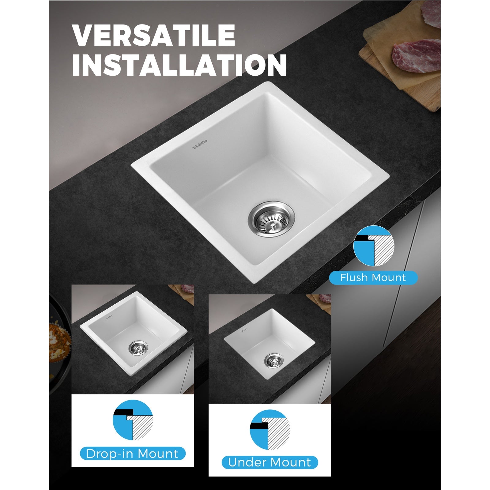 Welba Granite Stone Kitchen Bathroom Laundry Sink Under/Top Mount Single Bowl