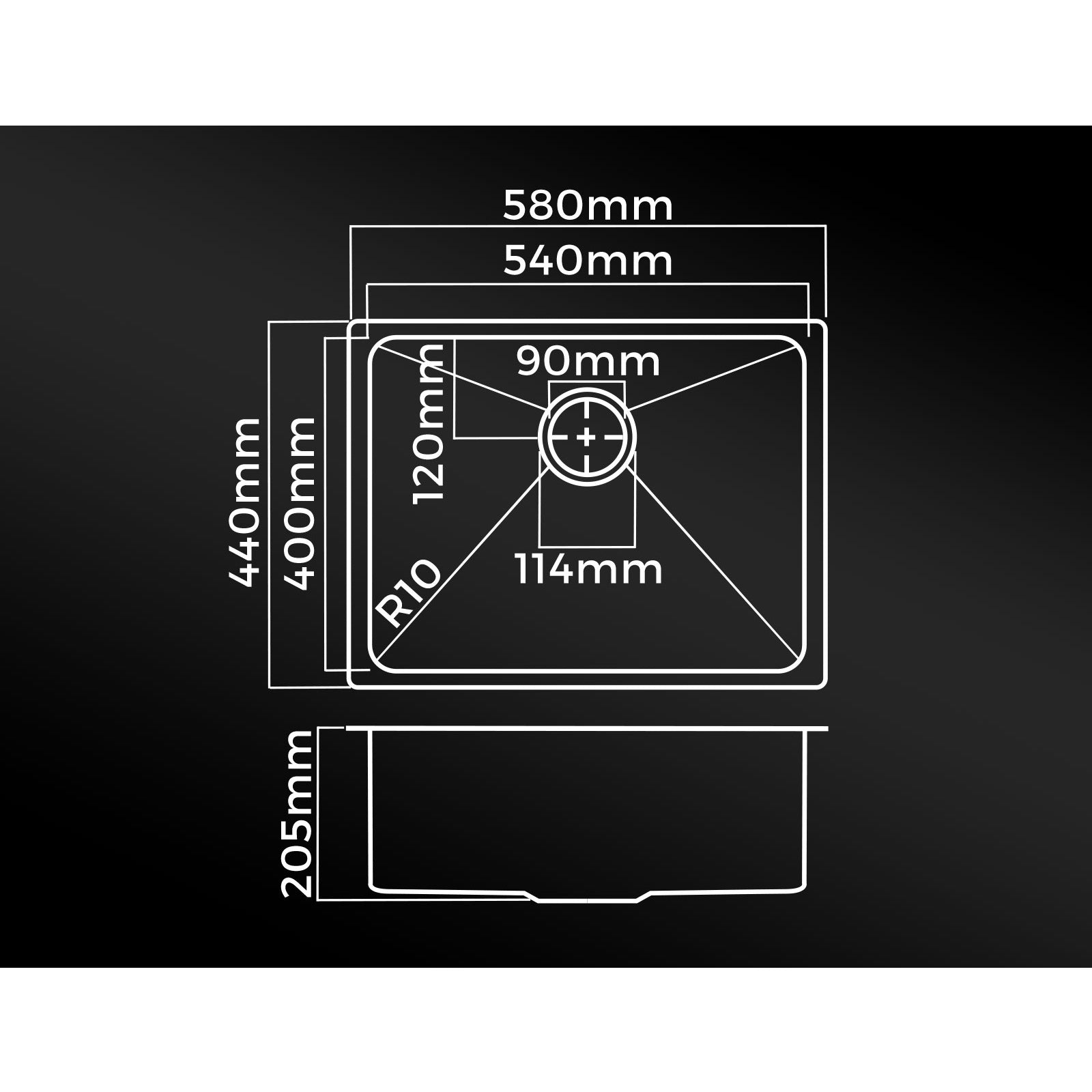 Welba Kitchen Sink Stainless Steel Bathroom Laundry Basin Single Silver 58X44CM