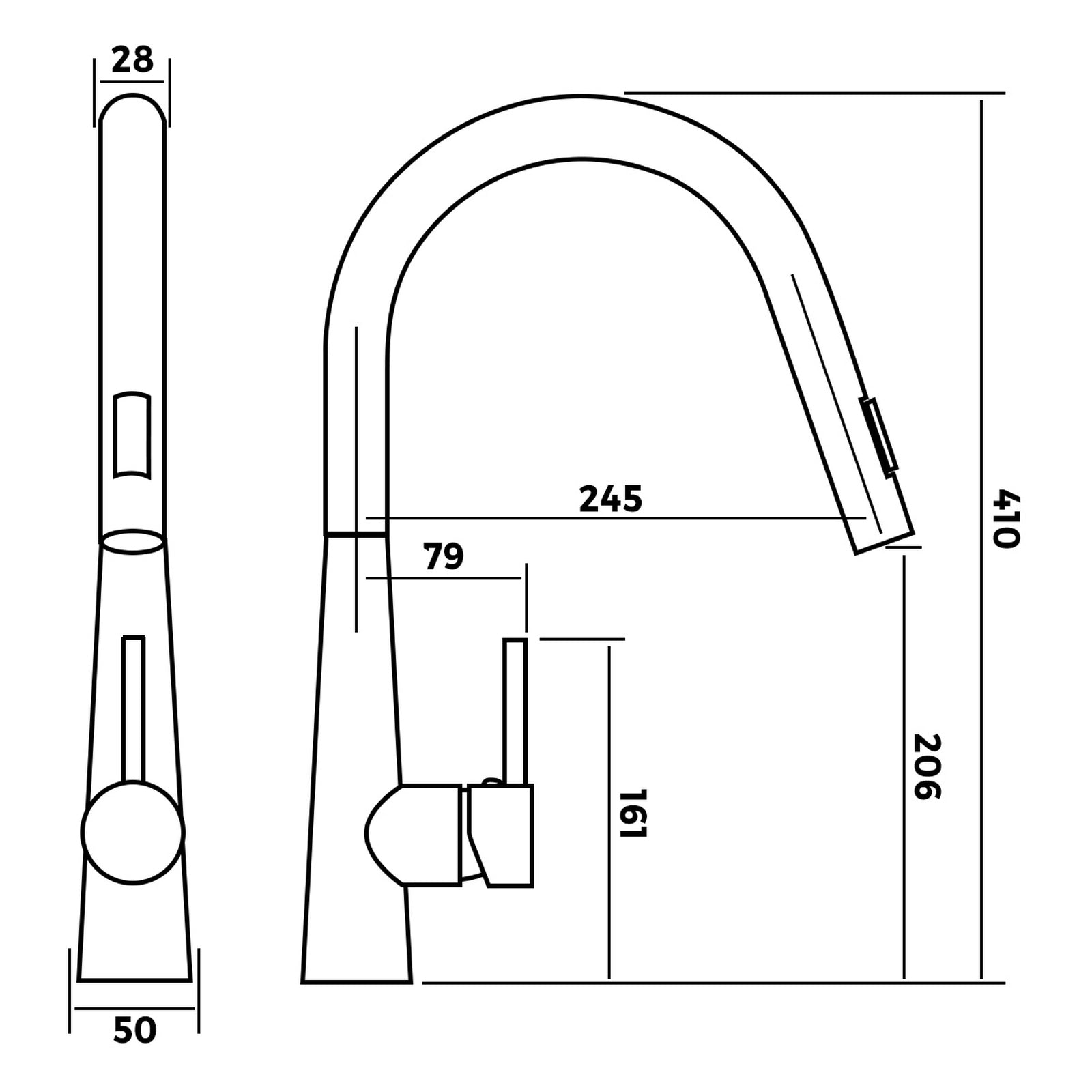 • Retractable pull-out spray with 60cm fibre hose,2-spray function: stream and shower