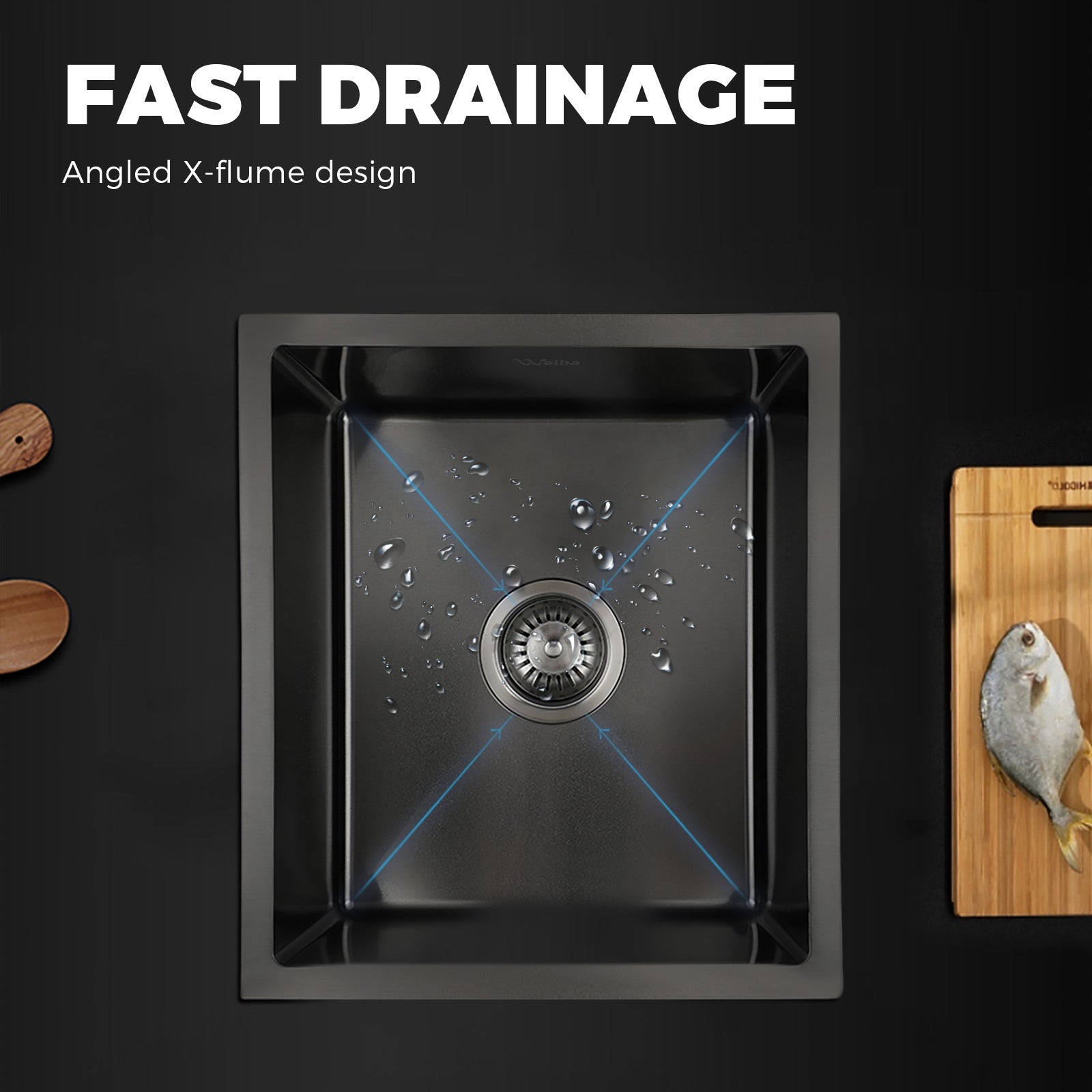 Looking for a sink that matches your expectations in every way.Then look no further than the Welba Stainless Steel Sink. Constructed of durable SUS304 stainless steel, the sink is simply built to last. With totally desirables attributes such as enhanced wear, scratch, corrosion and oil resistance, anti-bacterial, anti-fouling and food-grade safe. Plus, the nano-coated layer further adds to its refinement with a black, premium finish that simply looks and feels astounding. Better still, the deep bowl design and R10 corners provide plenty of space to do your dishes or prepare your cooking ingredients with minimum fuss.Using the sink is a joy too with its fast moisture-absorbing and anti-splash qualities that leaves the sink drier after each use. And the angled X-flume design allows quick drainage to keep the sink clear always. Not least, the Watermark-certified 304 stainless steel waste strainer, included as standard equipment, ensures that nothing gets clogged up with the plumbing.
