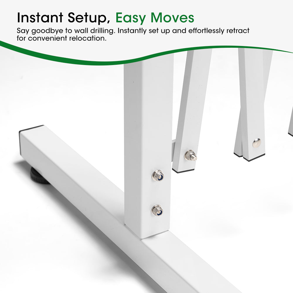 • Freestanding Ease: Skip the hassle of drilling into walls. Set up instantly and effortlessly retract for easy relocation.