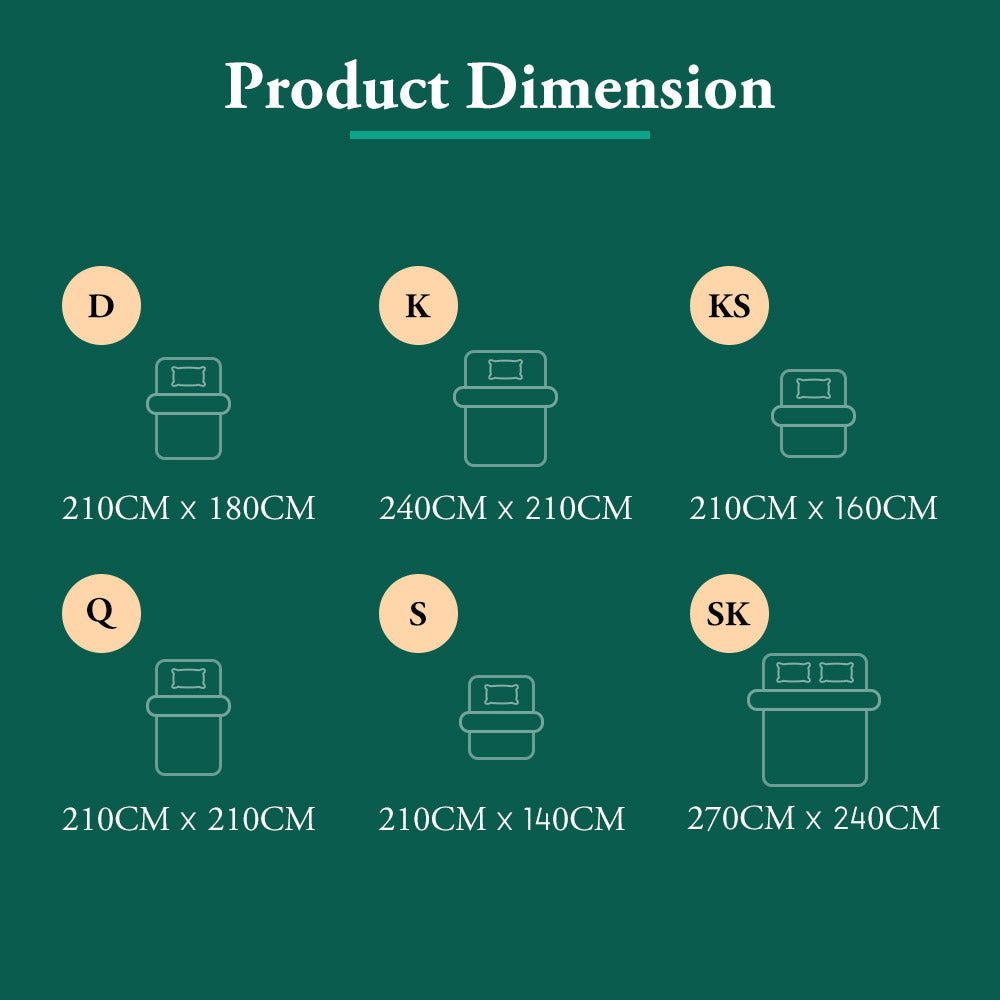 It's a fact of life that we need good-quality sleep to function. One of the best ways to ensure a good night's sleep is to have an optimal sleep environment. While most quilts will keep you warm. But our ZUNI goose quilt is as light as air and can provide you a comfortable sleeping environment all year round. Our ZUNI duvet combines 10% goose down and 90% feathers, providing exceptional warmth and comfort while repelling mites and mold for a healthier sleeping environment. The 100% cotton cover is soft, breathable, and acts as a barrier against bacteria and irritants, making it perfect for those with sensitive skin or allergies. The ZUNI duvet maintains excellent ventilation, keeping you cool and airy throughout the year. Its baffle-box construction ensures even distribution of the filling, preventing clumping or shifting. Double stitching enhances its durability, and it is machine washable for easy maintenance.