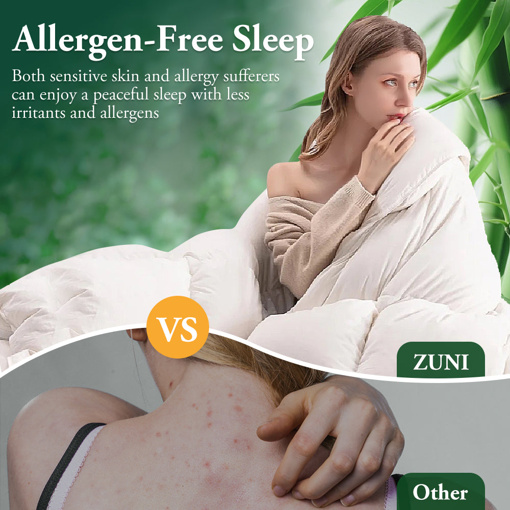 • Bamboo Blend Filling: The ZUNI natural bamboo quilt features a blend of 50% bamboo and 50% polyester, combining softness and durability for a restful sleep.