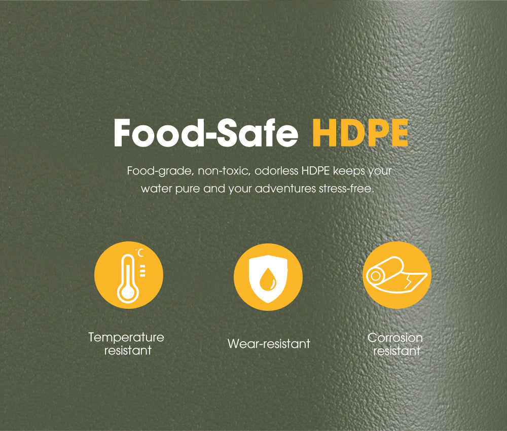 • Food Grade HDPE Housing: Crafted from food-grade, non-toxic HDPE that's odorless and safe, our Jerry can ensures your water stays pure and safe.